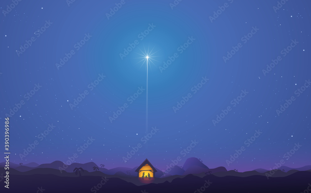 Canvas Print Shining star landscape above the nativity scene in bethlehem in the middle of th