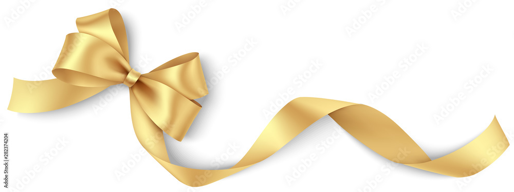 Canvas Print Decorative golden bow with long ribbon isolated on white background