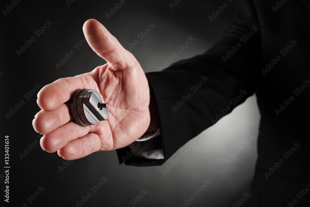 Photography Businessman's hand with a hand buzzer