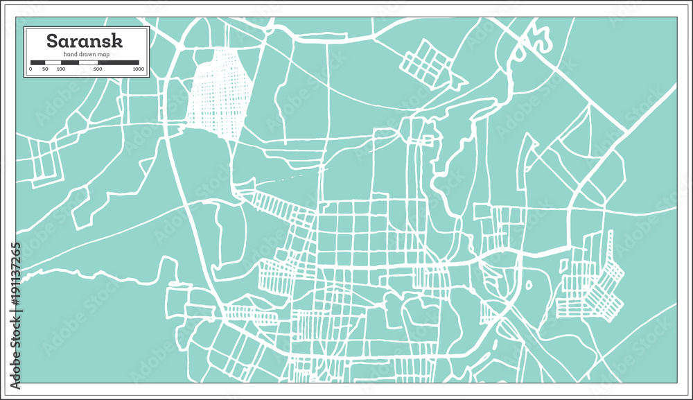 Sticker Saransk Russia City Map in Retro Style. Outline Map.
